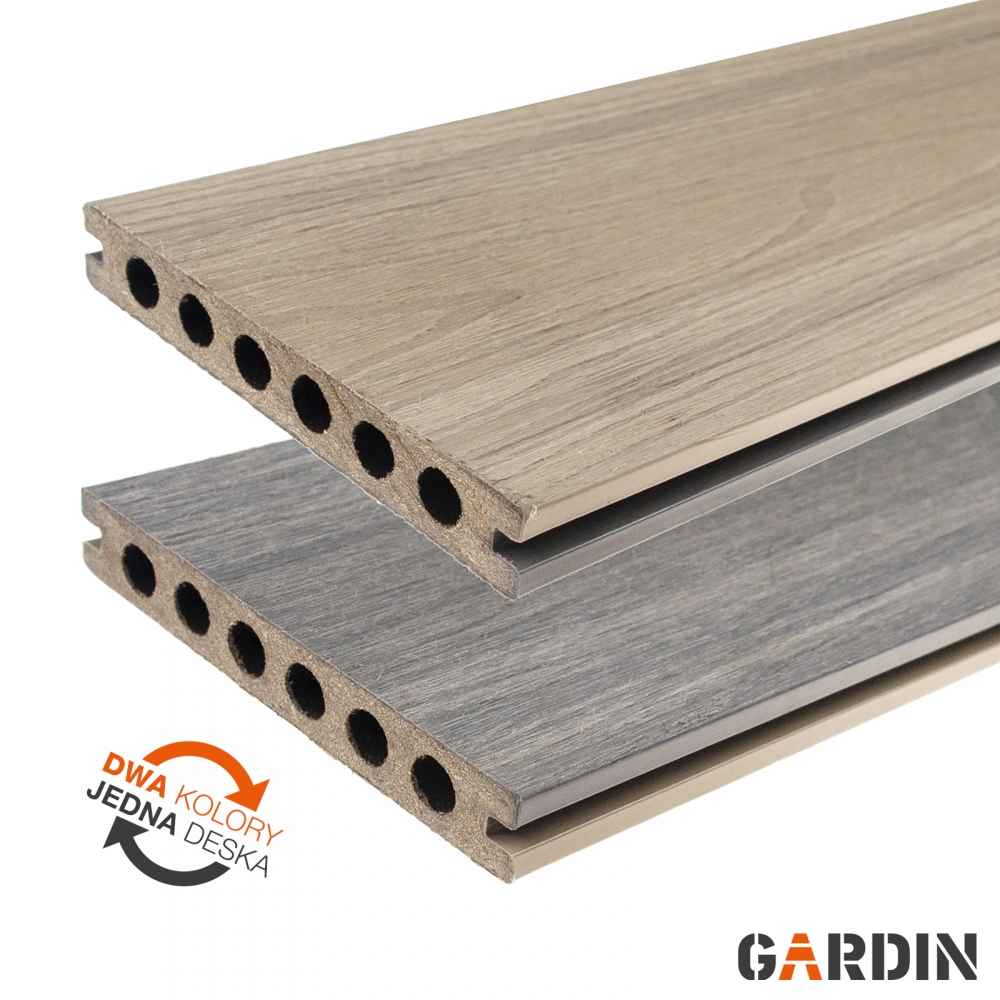 Композитна дошка, виготовлена за інноваційною технологією Co-extrusion. Двостороння та двоколірна. ЇЇ заводський колір більш стійкий до будь-яких змін кольору, в тому числі: викликані УФ-випромінюванням. Поверхня дошки прикрашена реалістичною 3D структурою, яка виглядає як справжня деревина, хоча не потребує сезонного догляду. З кожного боку є різний колір, що дозволяє швидко змінити зовнішній вигляд вашої тераси.