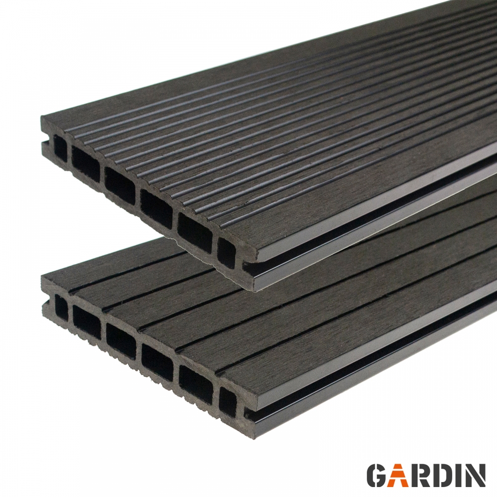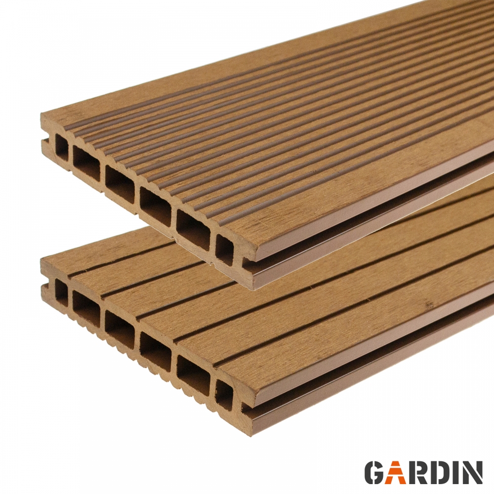 Композитна терасна дошка – ідеальне рішення для тих, хто цінує комфорт і естетичність природного вигляду тераси. Своєю винятковою міцністю дошка Gardin Plus зобов’язана своїй 6-камерній товстостінній структурі, яка підтримується 7 міцними кронштейнами та пазами, розташованими прямо над ними. Це робить її єдиною на ринку дошкою з такою міцною структурою, зберігаючи ідеальну геометрію та естетику. Окрім унікального та елегантного профілю, дошка Gardin Plus є, перш за все, дружнім та безпечним рішенням для терас, яка надзвичайно популярна на ринках Західної Європи та США.