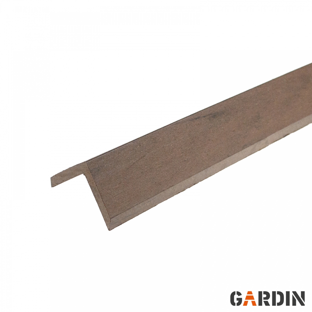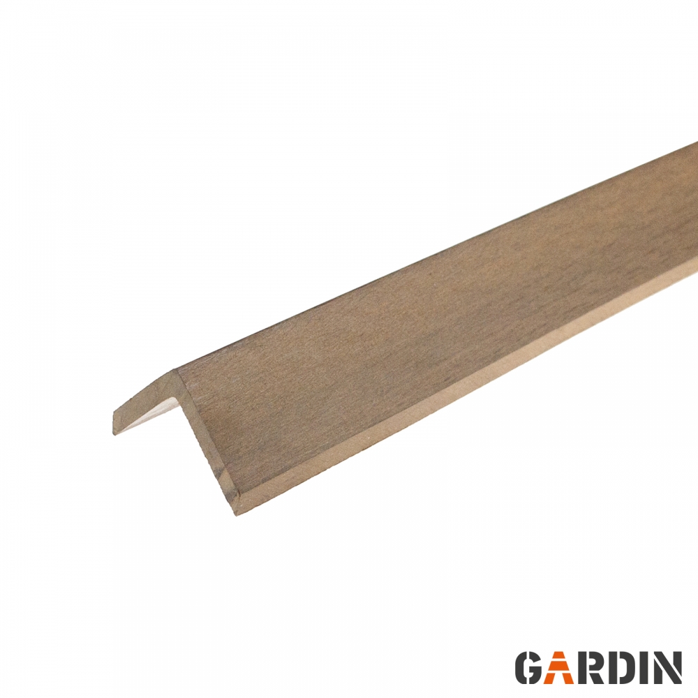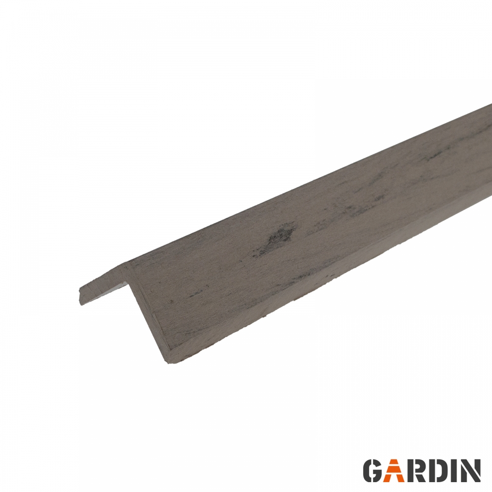 Кутова лиштва, призначена для терасної дошки Gardin Natur. Виготовлена із суміші полімерів високої щільності та деревних волокон. Вона товста, тверда і дуже міцна. Містить УФ-фільтри і стійка до біологічного руйнування. Випускається в кольорах, що відповідають кольорам дощок.