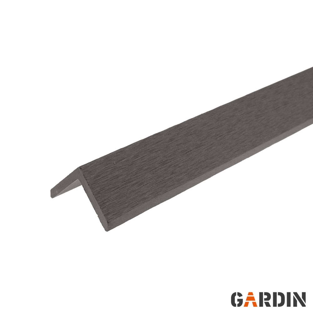 Кутова лиштва, призначена для терасної дошки Gardin Plus. Виготовлена із суміші полімерів високої щільності та деревних волокон. Вона товста, тверда і дуже міцна. Містить УФ-фільтри і стійка до біологічного руйнування. Випускається в кольорах, що відповідають кольорам дощок.