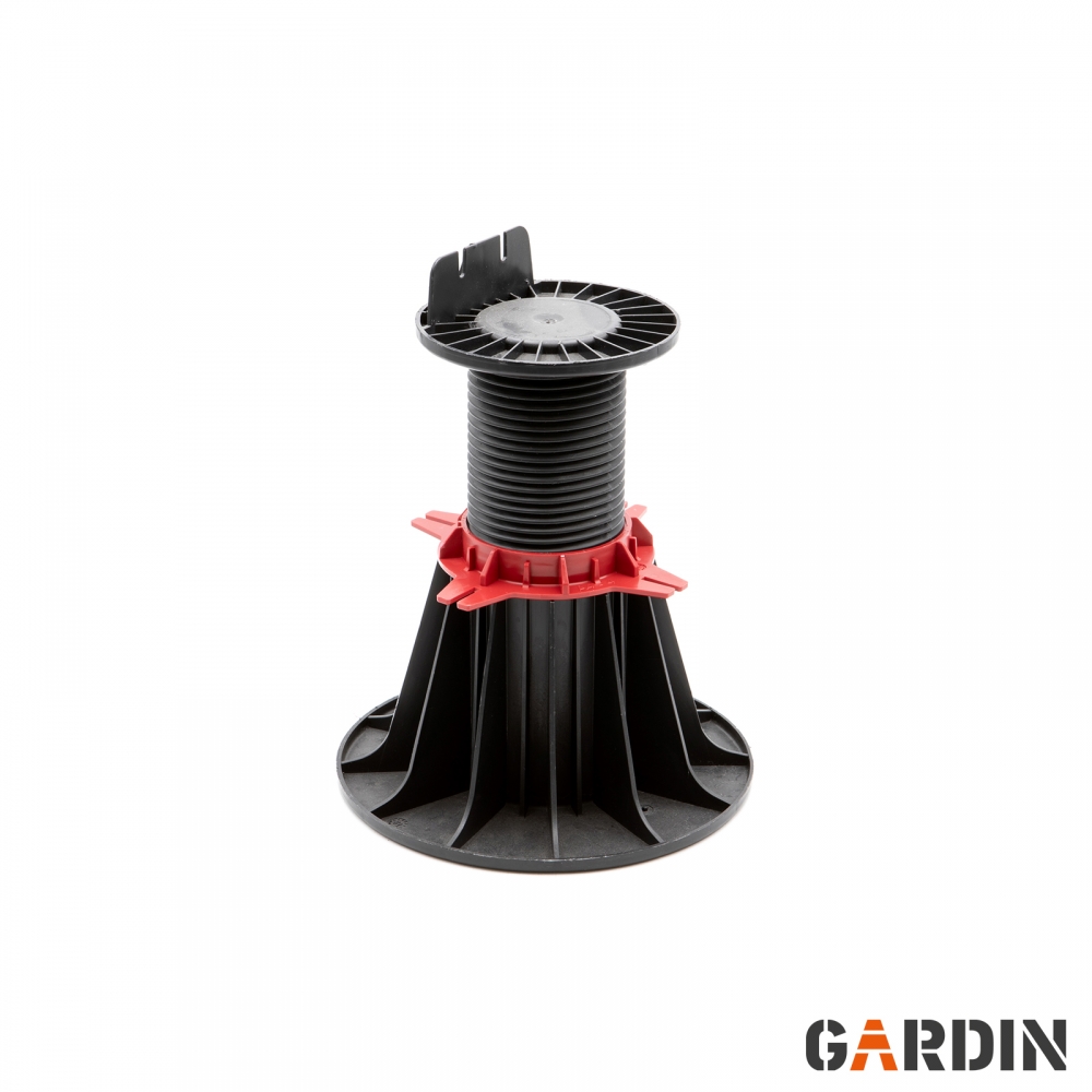 Регульована опора, завдяки якій тераса добре провітрюється, а опорна конструкція залишається сухою. Велика контактна поверхня із закругленими краями захищає фольгу під нею - навіть на мяких поверхнях. Лапка дозволяє регулювати в різних діапазонах.