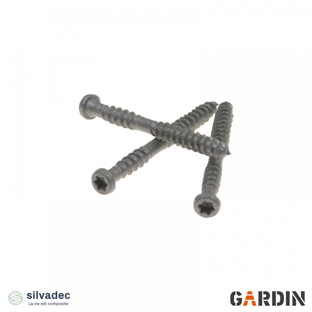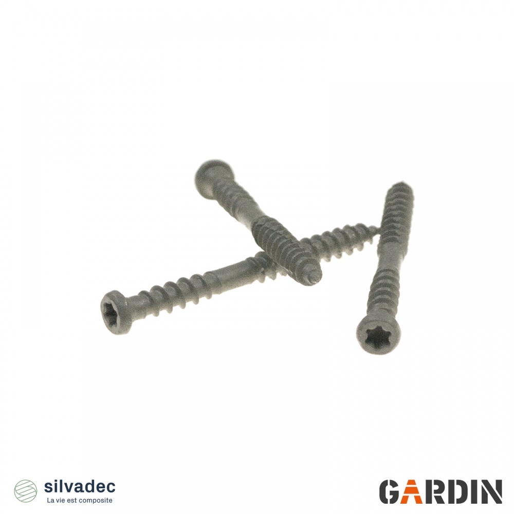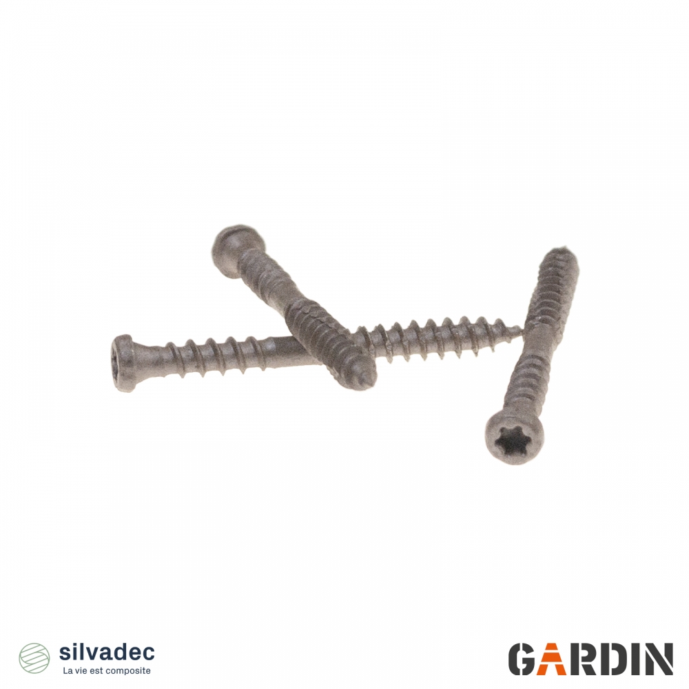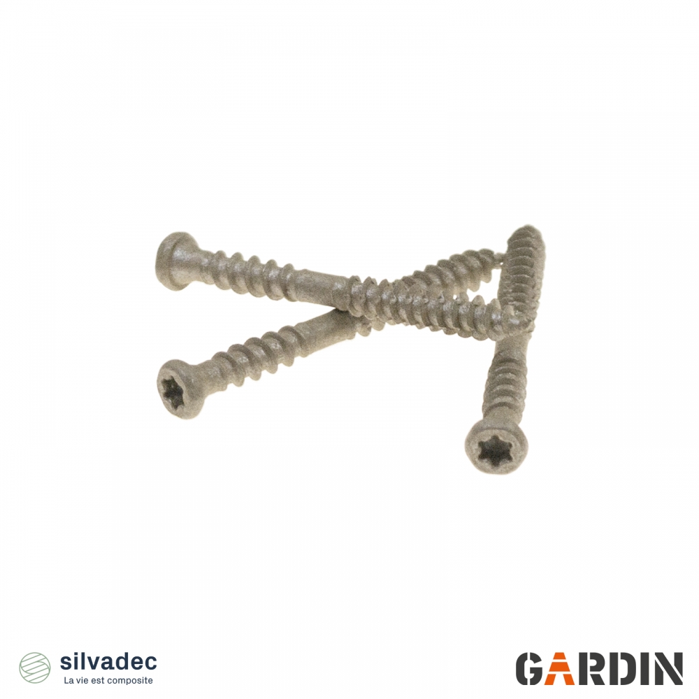 Доступні кольори, що відповідають кольорам тераси Silvadec. Дозволяє проводити акуратну установку дощок та фінішних планок. Ці гвинти можуть замінити стартові кліпси або використовуватися для кріплення останньої дошки тераси.